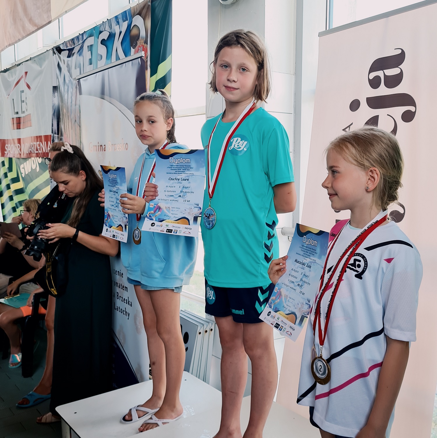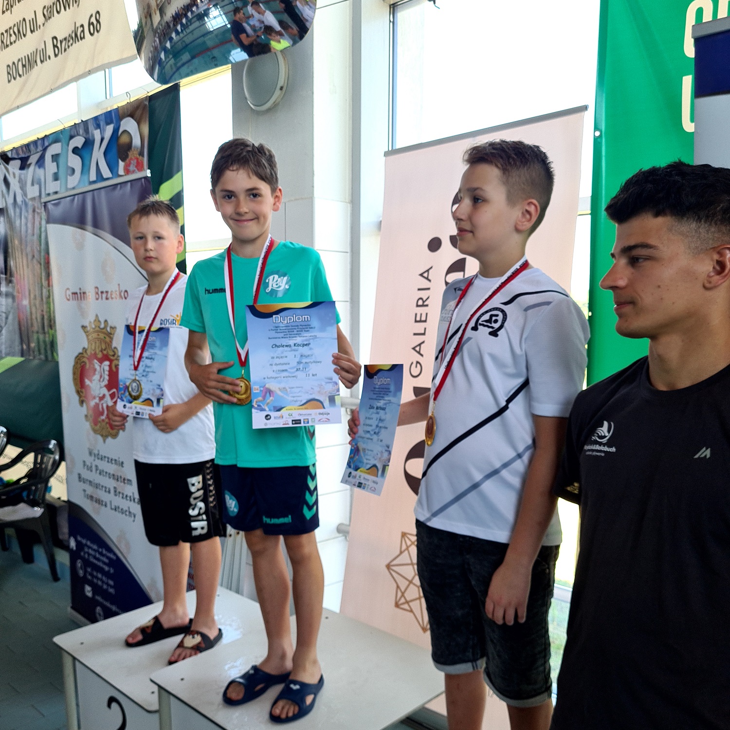 Medale w Brzesku zdobyli: Bernard Bałut (11 lat) – srebro na 50m grzbietowym, Kacper Cholewa (11 lat) – złoto na 50m motylkowym, brąz na 50m grzbietowym, brąz na 50m dowolnym, Laura Czuchra (10 lat) – złoto na 50m klasycznym, brąz na 50m grzbietowym, brąz na 100m klasycznym, Tobiasz Kopa (11 lat) – brąz na 100m zmiennym oraz Liliana Książczyk (10 lat) – srebro na 50m dowolnym, srebro na 100 klasycznym.
