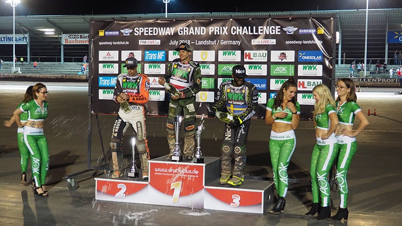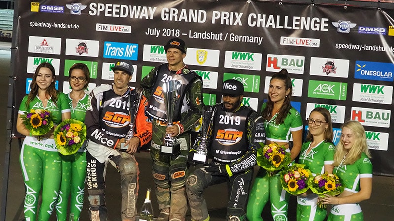 Co ciekawe, po treningu, który był rozgrywany kilka godzin przed zawodami Janusz nie był optymistą. W jego odczuciu motocykle nie pracowały odpowiednio. Do zadowolenia brakowało sporo. Widać to było po całym teamie Janusza, który miał zafrasowane miny. – Krzysiek Cegielski, mój menedżer powiedział mi tylko. Nie napalaj się na nic. Skoro już tu jesteśmy po prostu baw się jazdą – komunikował. Pierwsze trzy serie to była faktycznie zabawa z rywalami. Piorunujące starty, a potem trzymanie krawężnika, czyli optymalnej linii, która była receptą na sukces. Właściwie już przed czwartym rozdaniem Kołodziej był jedną nogą w niebie. Tylko on i Niels Kristian Iversen ustrzegali się wpadek. Reszta straszliwie gubiła punkty. Czwarta seria jawiła się jako najważniejsza i w niej można było załatwić sprawę. Robotę utrudniał fakt, że Kołodziej miał trzecie pole, które w sobotę było najmniej korzystne. Wystarczy napisać, że do trzynastej odsłony, w której jechał wychowanek Jaskółek, żaden z zawodników nie przywiózł do mety więcej niż jednego punktu. Kołodziej również nie odczarował tej „bramki”. Co więcej, totalnie zaspał moment puszczenia taśmy przez panią sędzinę Christine Turbull. Mimo to dołożył niezwykle cenne oczko, które przejął po wyprzedzeniu na drugim łuku Vaclava Milika. Czechowi brakowało zdobyczy, by marzyć jeszcze o przyszłorocznej jeździe w IMŚ więc skusił się na desperacki atak drugiej pozycji. „Vaszek” popełnił błąd. Wysunął się za daleko pod bandę na czym wchodząc w krawężnik skwapliwie skorzystał Kołodziej. Przed ostatnim wyścigiem było jasne, że by awansować wystarczy osiągnąć punkt. Janusz nigdy nie był minimalistą. Dowiózł dwa punkty, a w sumie dwanaście wystarczyło do wygrania najciekawszych i najbardziej frapujących obok samego GP zawodów w żużlowym kalendarzu. Zwycięstwo z takim dorobkiem jest rzadkim widokiem, ale to tylko pokazuje z jak wyrównaną stawką mieliśmy do czynienia z Landshut. Sam Janusz do samego końca nie zdawał sobie sprawy jak wielkiej rzeczy dokonał. Po zakończeniu swojej gonitwy jak gdyby nigdy nic zjechał do parku maszyn, a w bramie jak to zazwyczaj bywa nie czekali na niego mechanicy z szampanem, gotowi do podrzutów i radości ze swoim bohaterem. Dla obserwatorów zdarzenie dziwne, bo każdy kto prowadził program wiedział, że nic już Kołodziejowi nie zabierze promocji do Grand Prix 2019. – Szczerze mówiąc nie liczyłem punktów. Wiedziałem, że po trzech seriach nieźle idzie i szanse są spore, ale nie zdawałem sobie z tego sprawy. Podjechałem do boksu, zapytałem „Cegły” i jak jest? Krzysiek z uśmiechem tylko stwierdził, że wygrałeś. Byłem w szoku – tłumaczył uśmiechnięty od ucha do ucha. Oprócz naszego krajana z przepustek do cyklu GP mogli cieszyć się jeszcze Iversen i Antonio Lindbaeck, który dopiero w biegu dodatkowym wyszarpał sobie stałe uczestnictwo pokonując Craiga Cooka.