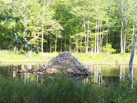 I tak doszliśmy do bobrzych budowli. Należą do nich przede wszystkim żeremia, tamy, ale także nory i kanały. Dzięki tamom, budowanym z kamieni, gałęzi, pni i mułu, bóbr tworzy rozlewisko, które jest mu potrzebne, aby z kolei wznieść w jego najgłębszym punkcie żeremie, czyli dom z gałęzi, patyków, uszczelniony mułem, wyścielony pędami roślin. W żeremiu rodzina bobrów mieszka, zwłaszcza zimą, tam przychodzą na świat młode, tam też spożywane są w chłodnych porach roku posiłki. Tamy tworzą często cały system, od niewielkich, kilkunastocentymetrowych, po ogromne konstrukcje długie na kilkadziesiąt metrów i wysokie niemal na dwa. Bobry dużo czasu spędzają na pracach modernizacyjnych przy tamach, tworząc przepusty, uszczelniając nieszczelności, poprawiając i remontując. Potrafią one, gdy poziom wody jest zbyt wysoki, rozszczelniać tamę tak, by nadmiar wody odpłynął. Z kolei kanały, niezbyt głębokie, ale ustawicznie udrożniane, pozwalają bobrom dotrzeć bezpiecznie, bo drogą wodną, nie lądową, do źródeł pokarmu lub drzew, które posłużą do budowy tamy. Dzięki tamom i kanałom poziom wody w utworzonym przez bobry stawie jest na odpowiednim poziomie. Wejście do żeremia jest ukryte pod wodą, więc zabezpieczone przed drapieżnikami. Pod powierzchnią wody ukryte są też zimowe zapasy. Bobry doskonale potrafią wybrać miejsce do budowy tamy tak, by stworzyć ją przy minimum wysiłku. Uwzględniają przy tym ukształtowanie terenu i rzeki lub strumienia, na którym powstaje ich rozlewisko. Wybierają zwykle miejsce płytsze i węższe, bywa, że już wcześniej zagrodzone częściowo przez naniesiony wodą materiał. Bystrzaki! Tamy powstają z dostępnego materiału, zwykle są to gałęzie i kawałki pni, muł, darń, a dzięki ich budowie staw bobra może mieć powierzchnię nawet kilkudziesięciu hektarów. To na nim budują żeremie, wysoką, obszerną., aby pomieściła całą rodzinę, budowlę z gałęzi i mułu. To najbardziej chyba charakterystyczny „zwierzęcy dom”. Z kolei nory powstają w wysokich, stromych brzegach, w miejscach, gdzie wahania poziomu wód są niewielkie i pozwalają na usytuowanie wejścia na tyle głęboko, żeby podczas mrozów woda nie zamarzła i nie uwięziła zwierząt. Korytarz wznosi się na tyle, by nawet podczas podniesienia się poziomu wody komora mieszkalna nie uległa zalaniu. Właściwie jest to system kilku komór połączonych korytarzami, których łączna długość może wynosić nawet 100 i więcej metrów. Nieźle, co?