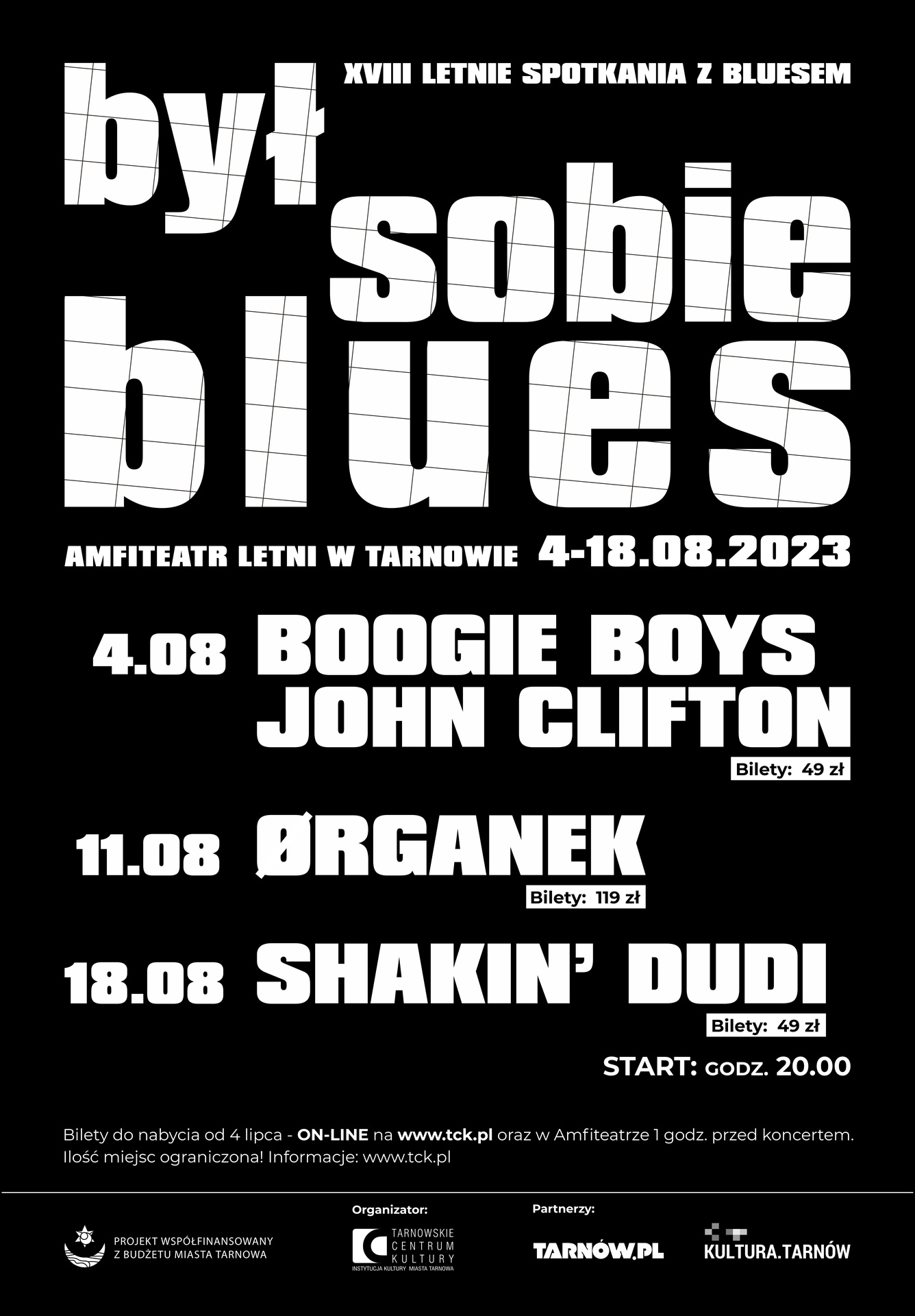 Blues na trwałe wpisał się w sierpniowy kalendarz imprez odbywających się w Tarnowie. Pod hasłem Był Sobie Blues już po raz osiemnasty odbędą się koncerty polskich artystów, których twórczość związana jest z tym gatunkiem. W tym rok będziemy mieli okazję posłuchać bluesa w dość szerokim ujęciu – od boogie woogie z domieszką czarnego bluesa, poprzez rock and rolla, rock alternatywny, a skończywszy na muzyce soul. Zaproszenie do udziału letnich spotkaniach z bluesem przyjęli – fantastyczny zespół Boogie Boys, amerykański wokalista i harmonijkarz, weteran bluesa John Clifton, będący uosobieniem polskiej historii bluesa Shakin’ Dudi, a także Ørganek – jeden z najpopularniejszych obecnie polskich zespołów rockowych, inspirujących się bluesem. Historię cyklu “Był Sobie Blues” przez wiele przy udziale Tarnowskiego Centrum Kultury tworzył tarnowski bluesman Wojciech Klich. Obecnie impreza ta należy do z najważniejszych w kalendarzu wydarzeń organizowanych przez TCK.