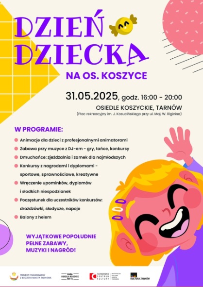 Dla dzieci przygotowano gry zespołowe, tańce, zabawy integracyjne i konkursy z nagrodami. Przez całe wydarzenie towarzyszyć im będzie dobra muzyka, przy której trudno będzie usiedzieć na miejscu. Maluchy z pewnością ucieszą się na widok dmuchanej zjeżdżalni i zamku, które będą dostępne bezpłatnie przez cały czas trwania imprezy. Nie zabraknie też słodkich upominków. Zabawa zakończy się o godzinie 20. Organizatorem wydarzenia jest Rada Osiedla nr 15 Koszyce.