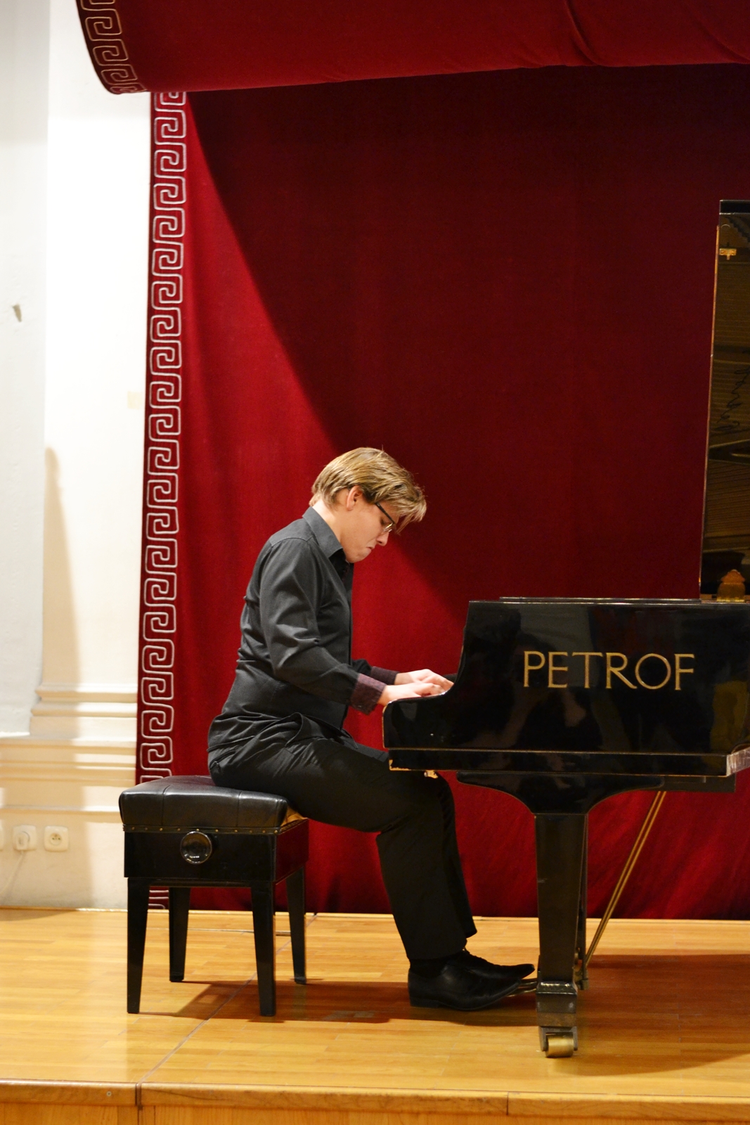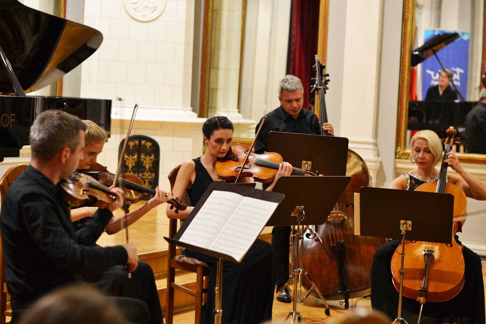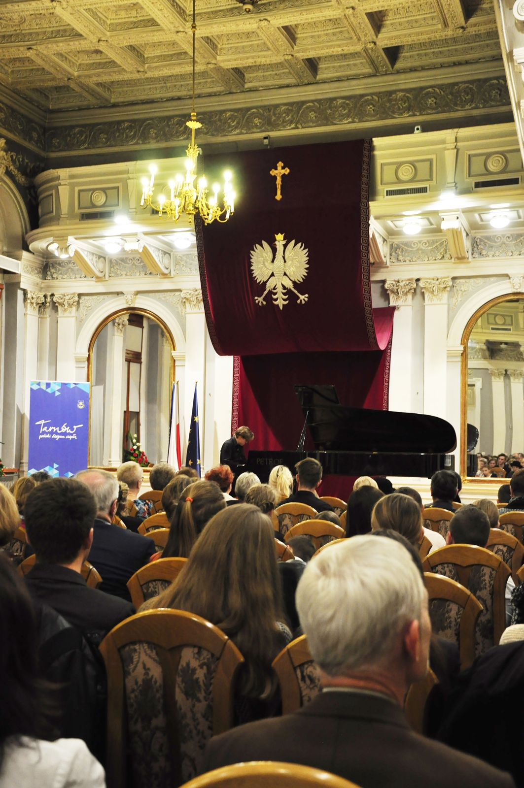 Robert Maciejowski, urodzony w Tarnowie w 1998, rozpoczął naukę gry na fortepianie w Zespole Szkół Muzycznych w Tarnowie w klasie Teresy Jarosz, mając 7 lat. Obecnie jest uczniem Ogólnokształcącej Szkoły Muzycznej II stopnia w Tarnowie pod kierunkiem profesora Mirosława Herbowskiego, laureatem zarówno krajowych, jak i międzynarodowych konkursów pianistycznych, a także stypendystą nagrodzonym między innymi przez Prezydenta Miasta Tarnowa. Brał też udział w kursach mistrzowskich pod okiem wybitnych pedagogów. W pierwszej części koncertu wykonał Etiudy op. 25 Fryderyka Chopina – drugi z cykli jego etiud, skomponowany w latach 1835-1837 i dedykowany hrabinie Marii d’Agoult, kochance węgierskiego pianisty Ferenca Liszta – oraz dzieła Ignacego Jana Paderewskiego – „Au Soir” op. 10 no 1 z „Album de Mai. Scènes romantiques pour Piano”, „Caprice (genre Scarlatti) op. 14 no 3, a także Nocturne op. 16 no 4. Ciekawostką jest, że dziewiąta etiuda Chopina, nazywana „Motylem” – grana w odpowiednim tempie – trwa zaledwie niecałą minutę. Jednym z jej najbardziej znanych wykonawców był właśnie Ignacy Jan Paderewski, choć w swoich utworach wykorzystują ją nawet muzycy jazzowi. W drugiej części koncertu młodemu artyście towarzyszył niezwykle charyzmatyczny kwintet smyczkowy, w skład którego wchodzili: Angelina Kierońska i Paweł Wajrak (skrzypce), Karolina Stasiowska (altówka), Anna Podkościelna-Cyz (wiolonczela), oraz Sławomir Ujek (kontrabas). Wspólnie zagrali dla publiczności „I koncert fortepianowy” e-moll op. 11 Fryderyka Chopina. Nie był to jednak pierwszy koncert skomponowany przez tego niezwykle utalentowanego polskiego pianistę, jak mógłby sugerować tytuł. W rzeczywistości powstał jako drugi, w roku 1830, jednak został wydany wcześniej z dedykacją dla Friedricha Kalkbrennera. Z zachowanych listów, które kompozytor pisywał do Tytusa Woyciechowskiego, wiadomo też, że powstał on pod wpływem pierwszej miłości Chopina. Utrzymany więc jest w aurze romantycznej, pełnej młodzieńczego zapału, a momenty entuzjazmu i uniesień przeplatają się w nim z chwilami spokoju i refleksji, czy nawet rozmarzenia.