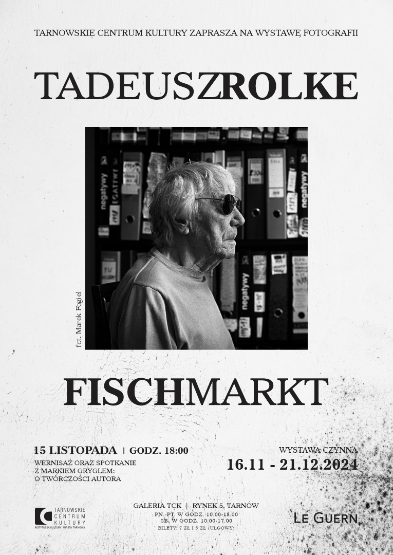 Tarnowskie Centrum Kultury serdecznie zaprasza na wystawę fotografii autorstwa Tadeusza Rolke, nestora polskiej fotografii. Wernisaż wystawy FISCHMARKT w piątkowy wieczór, 15 listopada o godzinie 18:00, podczas którego odbędzie się spotkanie z Markiem Gryglem: O twórczości autora.