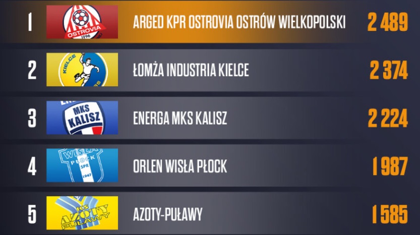 Najwyższą średnią frekwencją w lidze może pochwalić się Arged KPR Ostrovia Ostrów Wielkopolski. Tegoroczny beniaminek przebojem wdarł się do rozgrywek, notując nie tylko dobre wyniki sportowe, ale przede wszystkim kreując atmosferę wielkiego, handballowego święta w hali. Średnio mecz na żywo w Ostrów Arenie oglądało 2489 widzów. Drugie miejsca przypadło 19-krotnemu Mistrzowi Polski. Na spotkania Łomży Industrii Kielce średnio przychodziło 2374 fanów. Podium uzupełnia Energa MKS Kalisz, której mecze w bieżącym sezonie oglądało średnio 2224 osób.