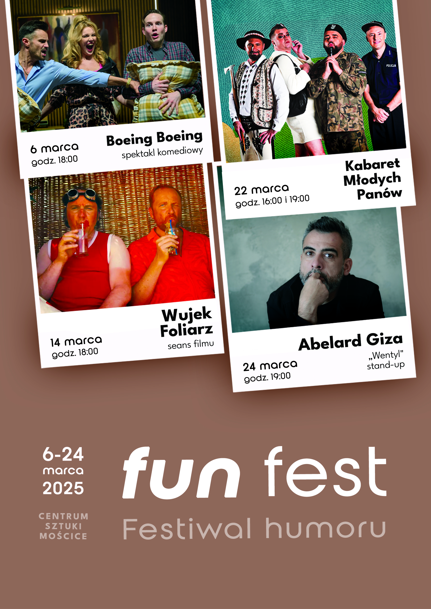 FunFest – Festiwal Humoru, odbędzie się w dniach 6 – 24 marca 2025 w Centrum Sztuki Mościce. Zapraszamy na trzecią już edycję festiwalu!