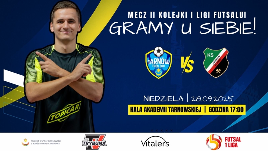 W niedzielę (28 września) o godzinie 17.00 Futsal Club Tarnów po raz pierwszy zaprezentuje się w meczu ligowym przed tarnowskimi kibicami. W rozpoczynającym się o godz. 17 spotkaniu drugiej kolejki południowej grupy pierwszej ligi, tarnowianie zagrają w hali Akademii Tarnowskiej z Sośnicą Gliwice.