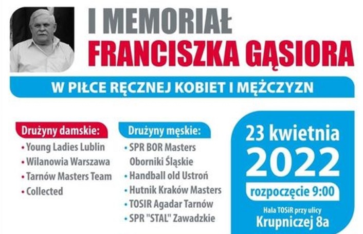 W sobotę, 23 kwietnia w hali Tarnowskiego Ośrodka Sportu i Rekreacji przy ul. Krupniczej zostanie rozegrany I Memoriał Franciszka Gąsiora w piłce ręcznej kobiet i mężczyzn.