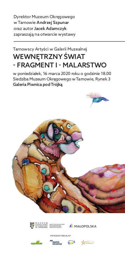 Kolejną ekspozycją realizowaną w ramach cyklu „Tarnowscy Artyści w Galerii Muzealnej” będzie wystawa prac Jacka Adamczyka pt.: „Wewnętrzny świat – fragment I – malarstwo”. Wernisaż odbędzie się w poniedziałek, 16 marca o godz. 18.00 w Galerii „Piwnica pod Trójką” Muzeum Okręgowego w Tarnowie przy Rynku 3. Na wystawie zostanie zaprezentowanych 48 prac malarskich wykonanych techniką akwareli.