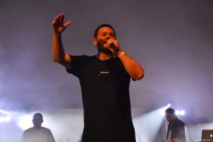 Już sam klimat tego miejsca, ciepłe, lecz już bardziej jesienne, aniżeli letnie popołudnie i coraz szybciej zapadający zmrok rozświetlony barwnymi reflektorami ze sceny sprawiały, że atmosfera była niesamowita. Nieśmiałą publiczność krótko rozgrzał DJ, ale dopiero Te-Tris swoją charyzmą i otwartością obudził ją na dobre. Pod scenę odważyła podejść się głównie młodzież, której utwory rapera były mniej lub bardziej znane, niemniej nawet osoby, które zostały na swoich miejscach, nie pozostały obojętne na ten sceniczny żywioł. Tu i ówdzie ktoś kołysał się w rytm muzyki lub nieśmiało podrygiwał stopą. Można więc zaryzykować stwierdzenie, że artysta ten poruszył publiczność, wśród której – jak się okazało – było wiele osób, które po raz pierwszy zetknęły się z jego twórczością. Podziwu godny był nieprzerwany kontakt rapera z widzami, z którymi nie tylko rozmawiał ze sceny, ale też bawił się wraz z fanami pod sceną i na widowni. Pokazał się publiczności jako artysta z małej miejscowości, który nie zrażał się niepowodzeniami i przeciwnościami losu, a tych nie brakowało. Skromnie opowiadający o tym, że wielu ludzi wciąż go nie rozpoznaje, choć nie są to wcale jego pierwsze kroki na scenie i wydał już kilka albumów. I to właśnie ta energia, którą podzielił się z publicznością, kontrolowana nutka szaleństwa, bezpośredni kontakt i naturalność, z jaką poruszał się na scenie robiła największe wrażenie. A większość publiczności nie wiedziała jeszcze wówczas, że Te-Tris jest ikoną undergroundowej sceny hip-hop i żywą legendą bitew freestylowych, że wielu uznaje go za jednego z najlepiej koncertujących artystów tego gatunku muzycznego i trzykrotnie reprezentował Polskę na HipHopKemp Festival w Czechach, a dwukrotnie wybrano go jako najlepszego wykonawcę podczas Polish Hip-Hop Festival w Płocku. Także o tym, że Adam „Te-Tris” Chrabin angażuje się również w działalność teatralną i warsztatowo-kulturową. A jednak czarował publiczność nie tym, co już osiągnął, nie tym, że współpracował chociażby z Quebonafide, Zeusem czy GrubSonem, ale swoją muzyką i słowem, przemyślanymi tekstami niosącymi przekaz, czy melodyjnymi, wpadającymi w ucho refrenami. Rozbrzmiały ze sceny między innymi takie utwory jak „Ile mogę”, „Skóra” czy „Kopi Luwak”.