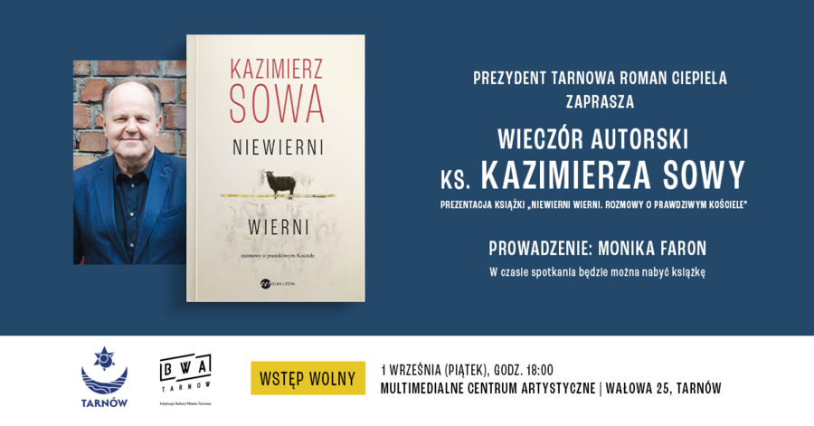 Biuro Wystaw Artystycznych zaprasza w piątek, 1 września o godzinie 18.00 na spotkanie autorskie z ks. Kazimierzem Sową i promocje książki “Niewierni. Wierni” w Multimedialnym Centrum Artystycznym, przy ul. Wałowej 25, które poprowadzi Monika Faron. Wstęp wolny. Na spotkaniu będzie możliwość zakupu książki.