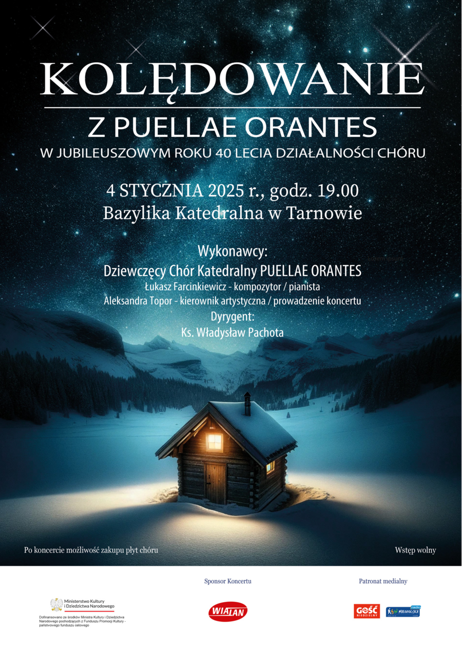 Będzie to pierwszy koncert w jubileuszowym roku 40-lecia działalności chóru. Zostaną podczas niego zaprezentowane kolędy i pastorałki zaaranżowane na zamówienie Puellae Orantes przez polskich kompozytorów.