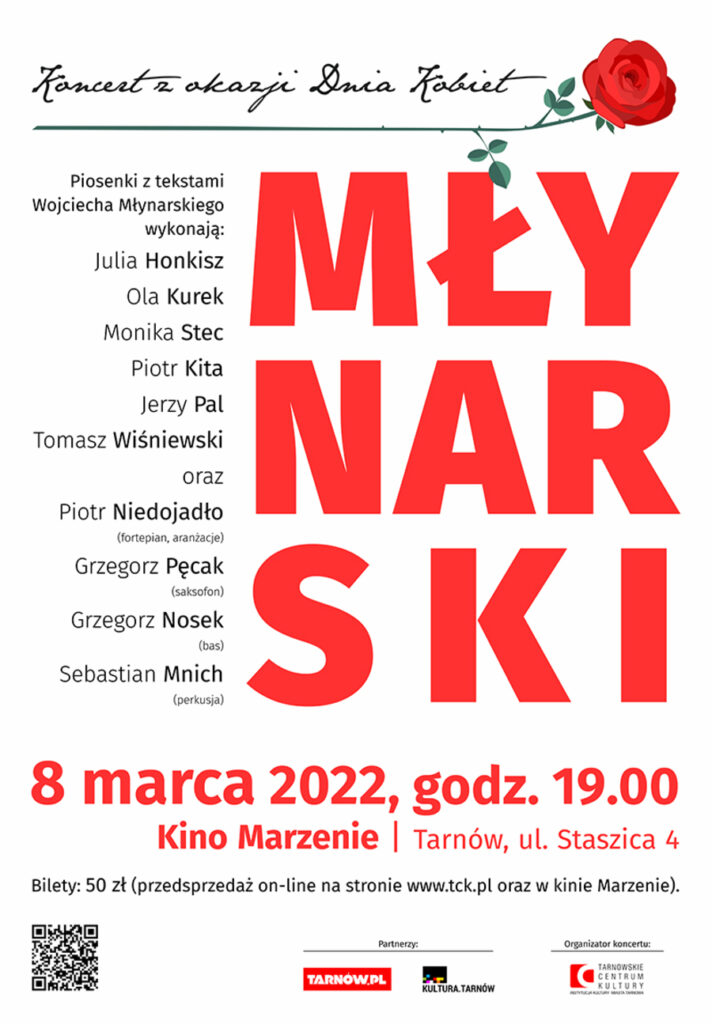We wtorek, 8 marca o godzinie 19.00 Tarnowskie Centrum Kultury zaprasza na wyjątkowy koncert z okazji Dnia Kobiet. “Młynarski” to kontynuacja cyklu muzycznych spotkań z najlepszymi polskimi autorami tekstów piosenek.