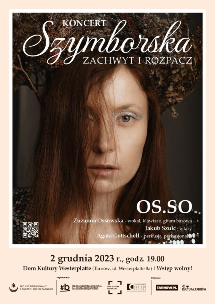 Z okazji setnej rocznicy urodzin Wisławy Szymborskiej, niezrównanej poetki i noblistki, zapraszamy na koncert upamiętniający jej postać i twórczość. Koncert zatytułowany „Szymborska – Zachwyt i Rozpacz”, w wykonaniu Zuzanny Ossowskiej (OS.SO), odbędzie się 2 grudnia 2023 rokuo godzinie 19:00w Domu Kultury Westerplatte w Tarnowie. Wstęp jest bezpłatny.