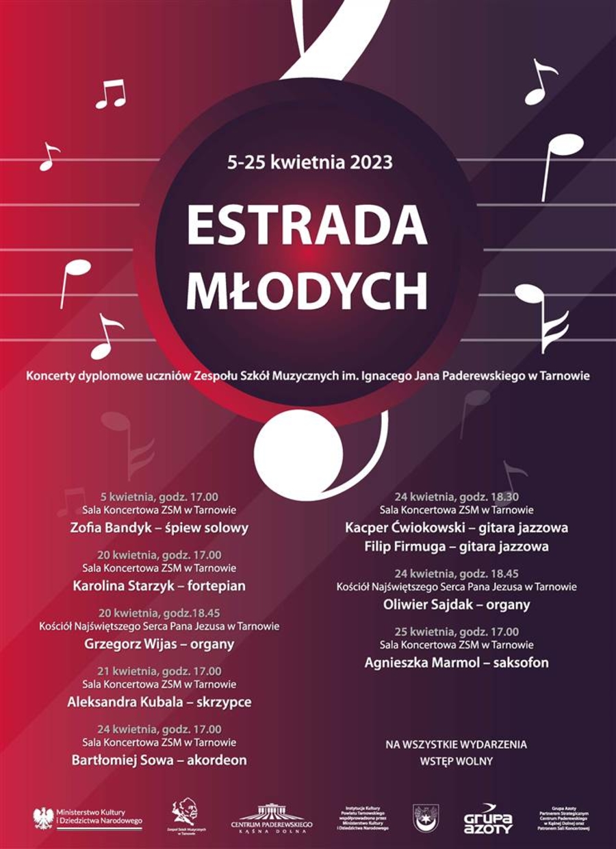 W dniach od 5-25 kwietnia br. uczniowie Zespołu Szkół Muzycznych w Tarnowie wykażą się swoim talentem na scenie podczas swoich koncertów dyplomowych. Wstęp na wydarzenia jest wolny.