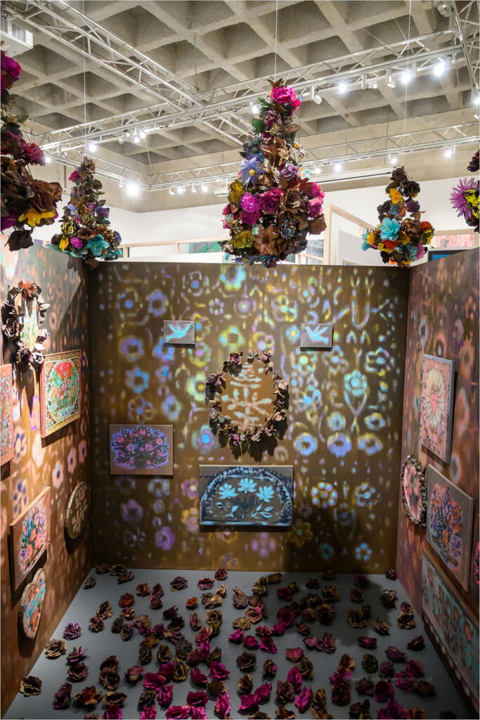 Tworząc swoją pracę wyróżnioną nagrodą główną Grand Prix artystka wykorzystała zużyte kwiaty sztuczne nadając im drugie, nowe życie. Zachęcamy uczestników do przyniesienia na warsztaty zużyte kwiaty (proszę nie kupować nowych).