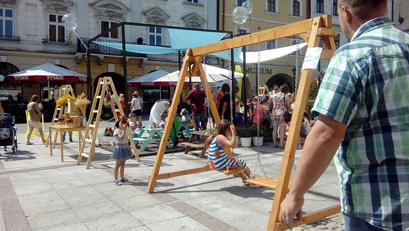 „Żeby życie miało smaczek…” No właśnie. Co zrobić, żeby życie smakowało? Można zacząć od kwestii najbardziej podstawowej, od zanurzenia się w dosłowności – i najzwyczajniej w świecie dopieszczenia zmysłu smaku? A zmysł ten najbardziej wyostrza się na polu. A skoro na polu to znaczy, że w Małopolsce. Bo na dworze nic nie smakuje równie dobrze. W niedzielę, 12 sierpnia tarnowski Rynek zamienił się w istny tygiel zapachów i smaków. Złaknieni swojskich specjałów Tarnowianie kluczyli pomiędzy straganami z przeróżnymi wytworami regionalnych kuchni. Dziś, w dobie produktów pełnych chemii, utleniaczy, spulchniaczy i wzmacniaczy smaku naprawdę warto starać się sięgać po to, co jak najbardziej naturalne. A jeśli o to chodzi to nasz region zdecydowanie ma się czym pochwalić. Różne rodzaje miodu, wyroby z wosku i piwo zdawały się rywalizować o to, które swym blaskiem przyciągnie największą uwagę. Nie brakło też wędlin, a w alejce ze stoiskami serowymi aż kręciło się w głowie. Ponieważ pogoda tego dnia była wyjątkowo łaskawa i blask słońca wprost zalewał płytę Rynku i spacerujących po niej ludzi, wielu szukało ulgi przy stoisku z lodami. A te, trzeba przyznać smakowały wybornie i pozwalały nie myśleć o upale (przynajmniej przez kilka chwil). Miłośnicy kosmetyków naturalnych również mogli tego dnia znaleźć na Rynku coś, czym warto się zainteresować. Dodatkowo można było wziąć udział we wspólnym przygotowywaniu różnego rodzaju wypieków. Fani programów kulinarnych nie musieli tego dnia siedzieć przed telewizorami. Mogli rozkoszować się tego rodzaju smakowitym widowiskiem na żywo. W oczekiwaniu na to aż np. upiecze się kolejna warstwa ciasta opowiadano o wybitnych dokonaniach kulinarnych, ale też o największych wpadkach, które przecież zdarzają się nawet najlepszym. Organizatorzy imprezy nie zapomnieli również o najmłodszych. Niemal co kilka kroków można było natknąć się na atrakcje przygotowane dla dzieci. Były tory przeszkód i stanowiska z materiałami plastycznymi, gdzie przyszłość narodu mogła rozwijać zdolności manualne. Było kolorowo i gwarno. Dzieciarnia biegała, szarpała rodziców za rękawy wyjąc „ja chcę na lody” lub też z zapałem tworzyła laleczki w zwiewnych jak chmurka, tiulowych spódniczkach. Przedstawiciele młodego pokolenia obdarzeni zalążkami talentu malarskiego mieli do dyspozycji specjalną tablice ze słusznym zapasem kolorowej kredy. Tarnowski Rynek żył, śpiewał, gadał. I pachniał! I słusznie można było obawiać się, że pod wpływem tych woni mieszkańcy Tarnowa zbiorowo dostaną niekontrolowanego ślinotoku. Impreza trwała od godziny 10:00 do 20:00. Czy była potrzebna? Ależ oczywiście! Parafrazując słowa poety – wszak wszystko jest kwestią smaku.