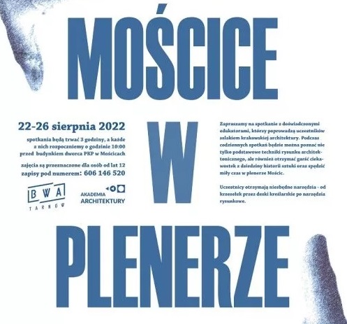 Biuro Wystaw Artystycznych zaprasza zainteresowanych na wakacyjny plener rysunkowy, który rusza w dniach 22-26.08.2022 (od poniedziałku do piątku) w godz. od 10:00-13:00 przed budynkiem dworca PKP w Mościcach. Zajęcia przeznaczone są dla uczestników: 12+ i prowadzone będą przez: Sonie i Bartłomieja Pochopniów.