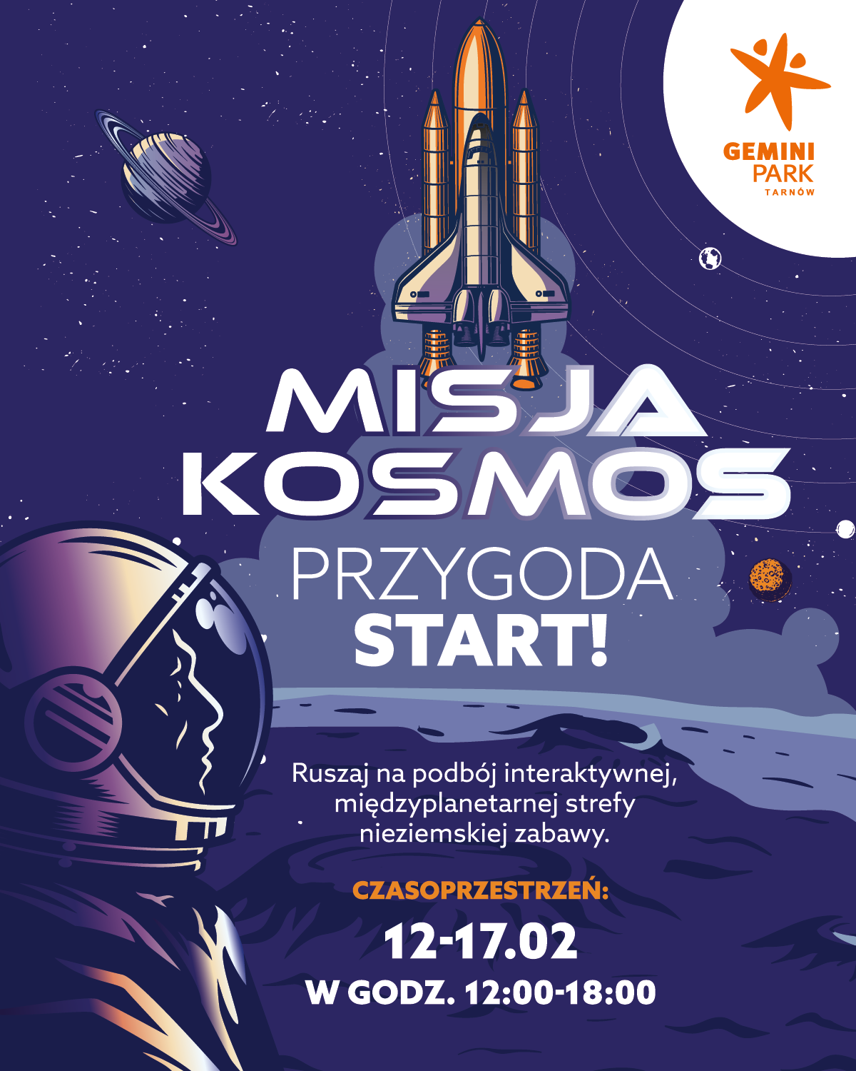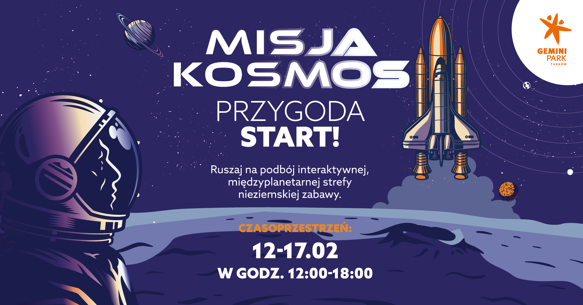 Przygotujcie się na niesamowitą podróż przez galaktyki w Gemini Park! Od 12 do 17 lutego zapraszamy na pełne gwiezdnych atrakcji ferie dla małych astronautów i wielkich odkrywców! Kosmiczna ekspedycja, którą przemierzymy podczas interaktywnej i całkowicie bezpłatnej wystawy pełnej edukacyjnych doświadczeń, zagwarantuje nie tylko wiedzę, ale i nieziemską zabawę!
