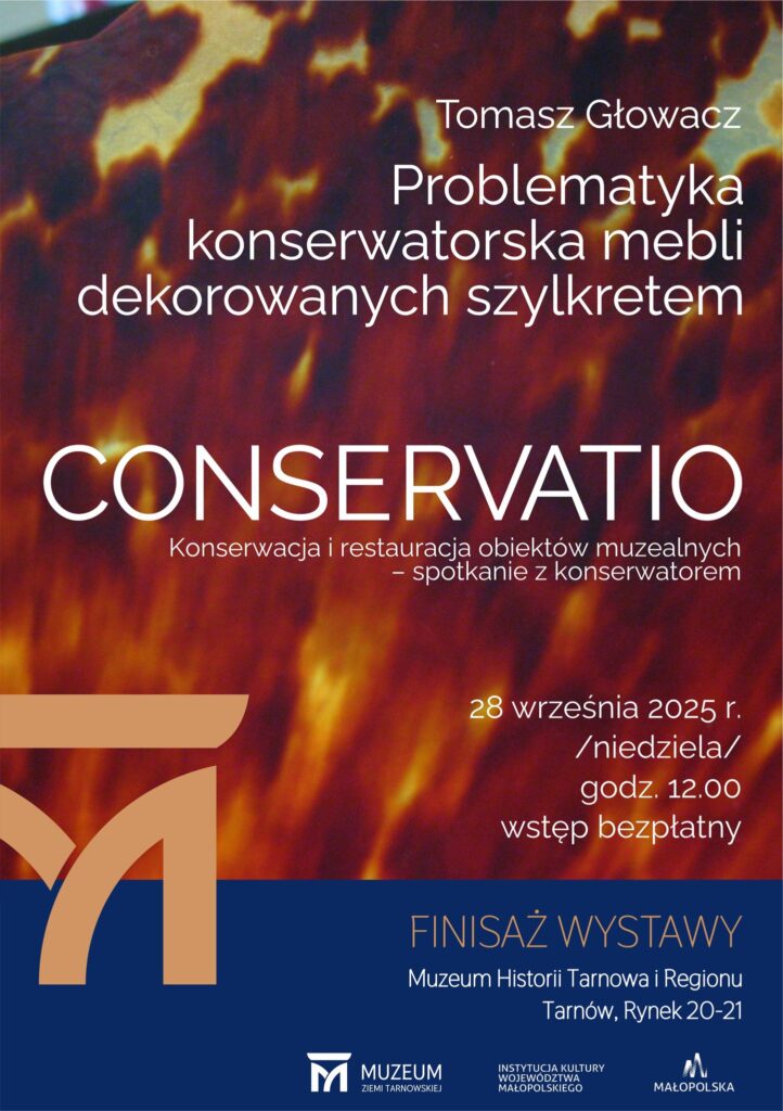 Niedzielne spotkanie będzie równocześnie finisażem wystawy „CONSERVATIO. Konserwacja i restauracja obiektów muzealnych”. Prezentowana od maja ekspozycja pozwala zajrzeć za kulisy pracy konserwatorów – od prostych zabiegów zachowawczych po złożone procesy restauracji obiektów wykonanych z metalu, drewna, tkaniny, płótna czy papieru. Ukazano na niej również sposoby konserwacji w wyspecjalizowanych pracowniach zewnętrznych, jakimi dysponują np. Akademie Sztuk Pięknych w Krakowie i we Wrocławiu. Zaprezentowano także obiekty pochodzące ze zbiorów Muzeum Ziemi Tarnowskiej, które na co dzień można podziwiać na ekspozycjach Muzeum Zamku Królewskiego w Warszawie, Muzeum Narodowego w Krakowie czy na Zamku Pieskowa Skała – Oddzialu Zamku Królewskiego na Wawelu.