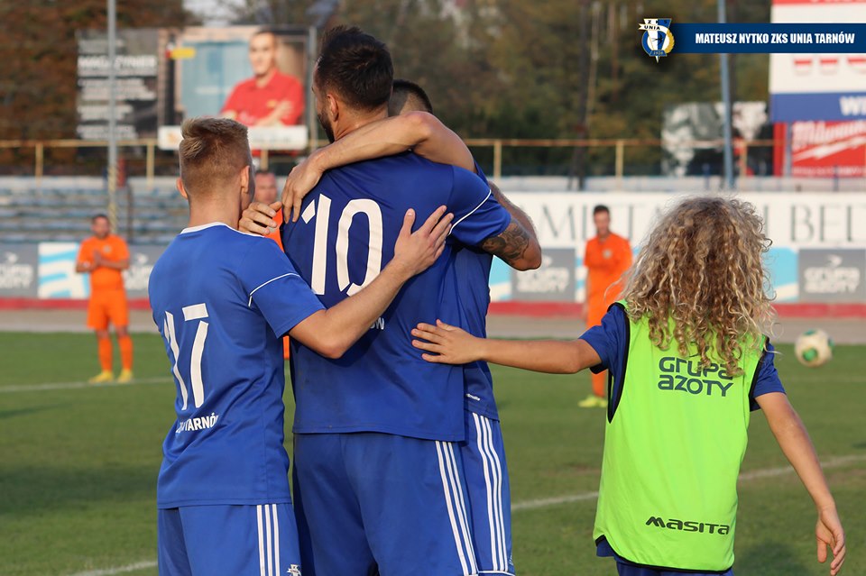 Przewaga Unii utrzymywała się także po przerwie, a goście zmuszeni do obrony swoich szans szukali w kontratakach. Po godzinie gry groźny strzał z około 17 metrów oddał Szymon Adamski, lecz piłka minimalnie minęła bramkę. Prowadzenie Jaskółkom dała akcja wykończona przez duet napastników Popiela-Biały. Pierwszy z nich zagrał głową obok kładącego się golkipera gości, a drugi efektownym szczupakiem wpakował futbolówkę do siatki. Po zdobyciu gola Unia dążyła do podwyższenia prowadzenia, jednak Krzysztof Kordeczka kilkakrotnie tego dnia ratował swój zespół efektownymi paradami. Pechowo dla Jaskółek zakończyła się ostatnia akcja meczu, która zadecydowała o końcowym rezultacie. Po wrzutce z rzutu wolnego, zamieszanie w polu karnym gospodarzy wykorzystali przyjezdni i pakując piłkę do bramki wyszarpali remis. Arbiter nie wznowił już gry i obie drużyny podzieliły się punktami.