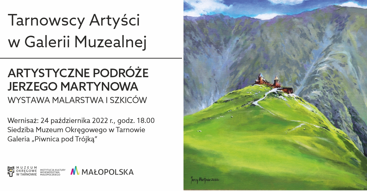 W poniedziałek, 24 października 2022 r., o godz. 18:00, w Siedzibie Muzeum Okręgowego w Tarnowie, Rynek 3 – Galeria „Piwnica pod Trójką”, odbędzie się wernisaż ekspozycji: „Artystyczne podróże Jerzego Martynowa” – wystawa malarstwa i szkiców.