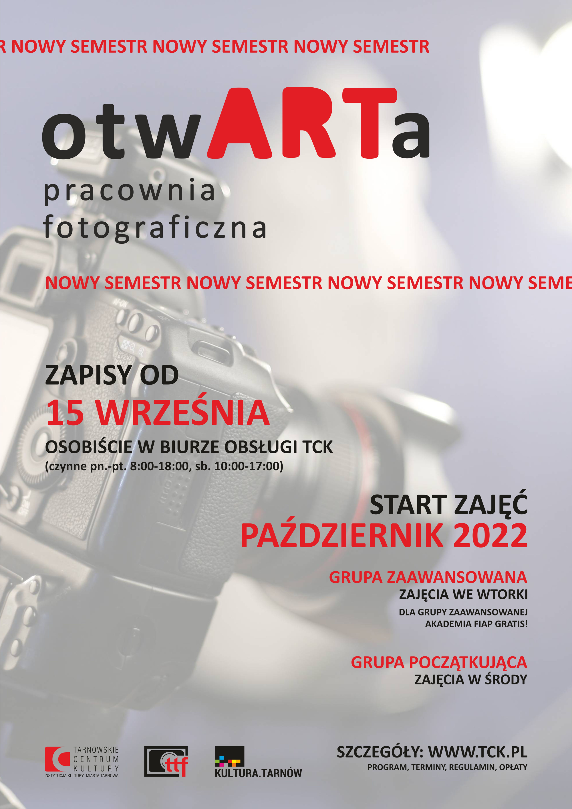 Wkrótce ruszą zapisy do działającej w Tarnowskim Centrum Kultury otwARTej Pracowni Fotograficznej. To już piąta edycja zajęć prowadzonych przez profesjonalistów z Tarnowskiego Towarzystwa Fotograficznego. Zapraszamy do udziału wszystkich miłośników fotografii.