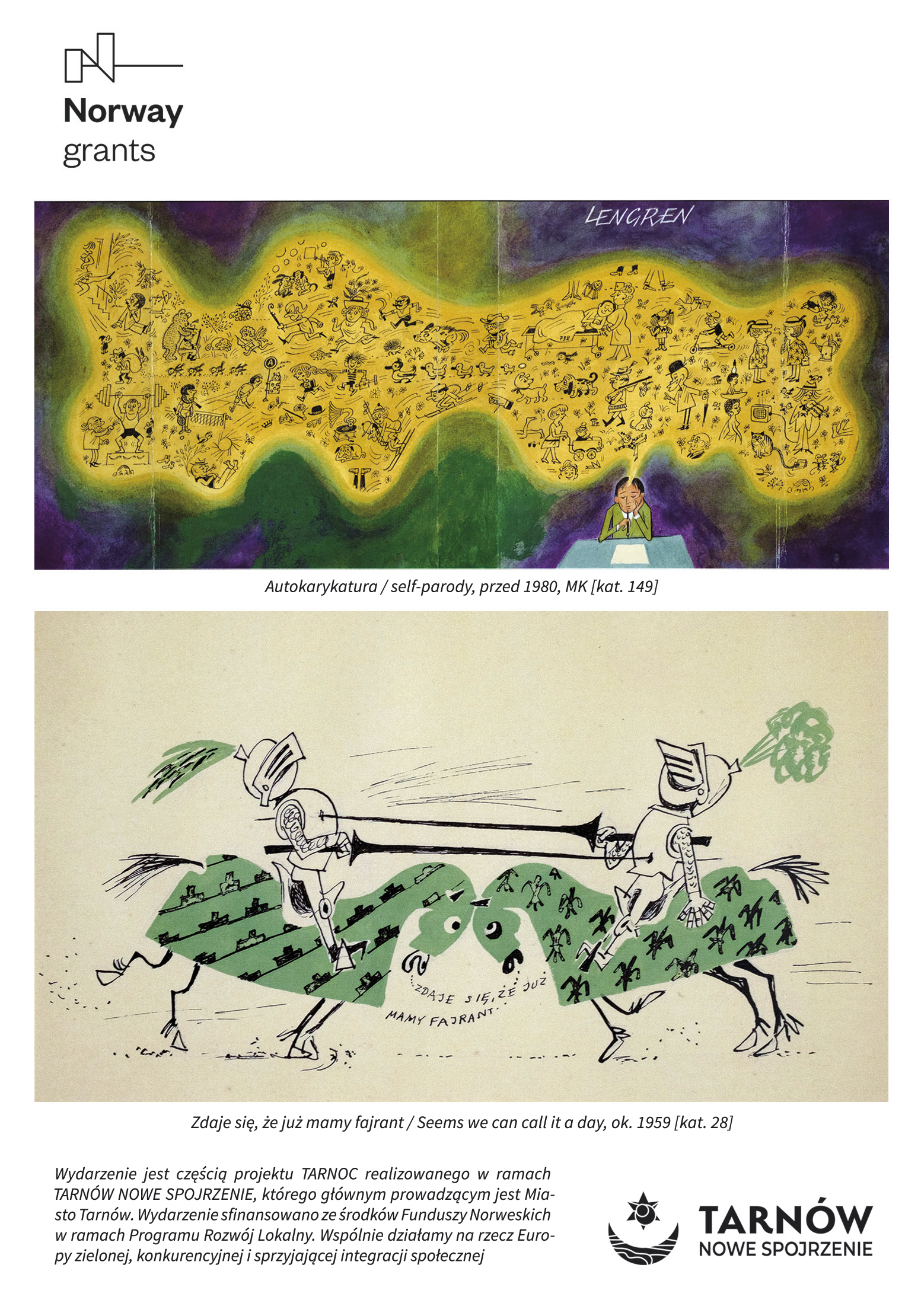 Wydarzenie jest częścią projektu TARNOC realizowanego w ramach TARNÓW NOWE SPOJRZENIE, którego głównym prowadzącym jest Miasto Tarnów. Wydarzenie sfinansowano ze środków Funduszy Norweskich w ramach Programu Rozwój Lokalny. Wspólnie działamy na rzecz Europy zielonej, konkurencyjnej i sprzyjającej integracji społecznej –