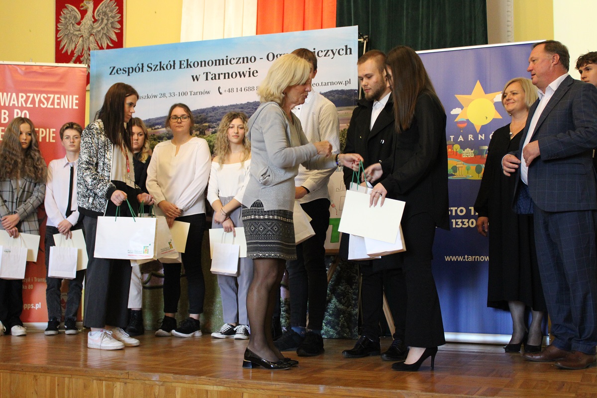 Rozstrzygnięto konkurs wiedzy z zakresu transplantologii. I miejsce zdobyła Klaudia Burnat kl. IV TAK, II miejsce ex aequo: Konrad Armatys kl. IV TOT i Sebastian Kupiec kl. IV TAK, III miejsce: Matt Banaś kl. IV TH5, a wyróżnienia otrzymały: uczennice klasy IV TAK: Oliwia Kawa, Aleksandra Stefan, Justyna Ziomek i Anna Mróz oraz uczennica kl. II TOT Klaudia Ostrowska. Dyplomy i nagrody rzeczowe laureatom wręczyli Dyrektor ZSEO Robert Kozioł i Wicedyrektor Jolanta Chmura. Zdobywcy pierwszych trzech miejsc otrzymali dodatkowe nagrody od pani Prezes SOPPS Małgorzaty Rejdych. Gościom wręczono również upominki ufundowane przez Urząd Miasta Tarnowa.