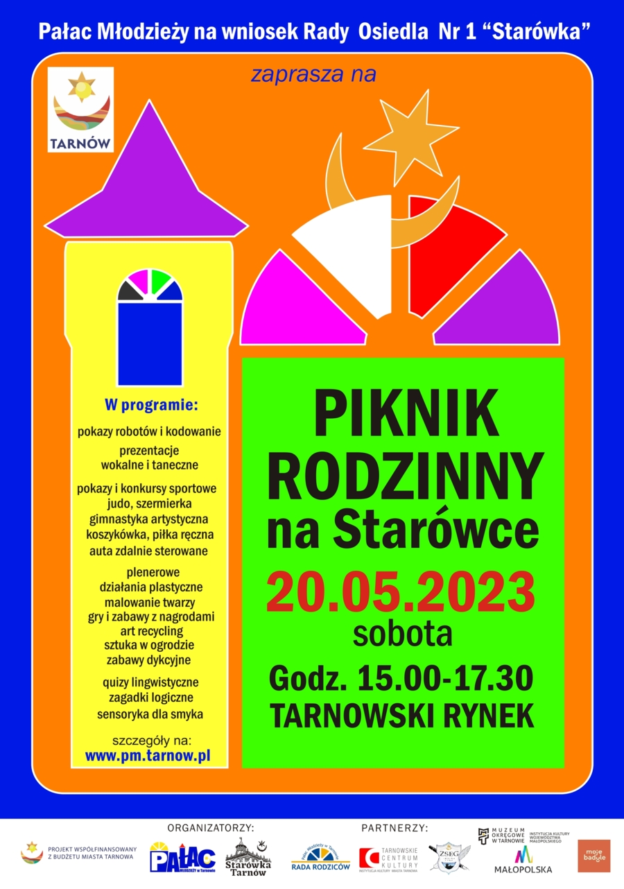 Pałac Młodzieży i Rada Osiedla Starówka zapraszają w sobotę 20 maja o godz. 15.00 na tarnowski Rynek na Piknik Rodzinny. Podczas wydarzenia – atrakcje, nie tylko dla najmłodszych.