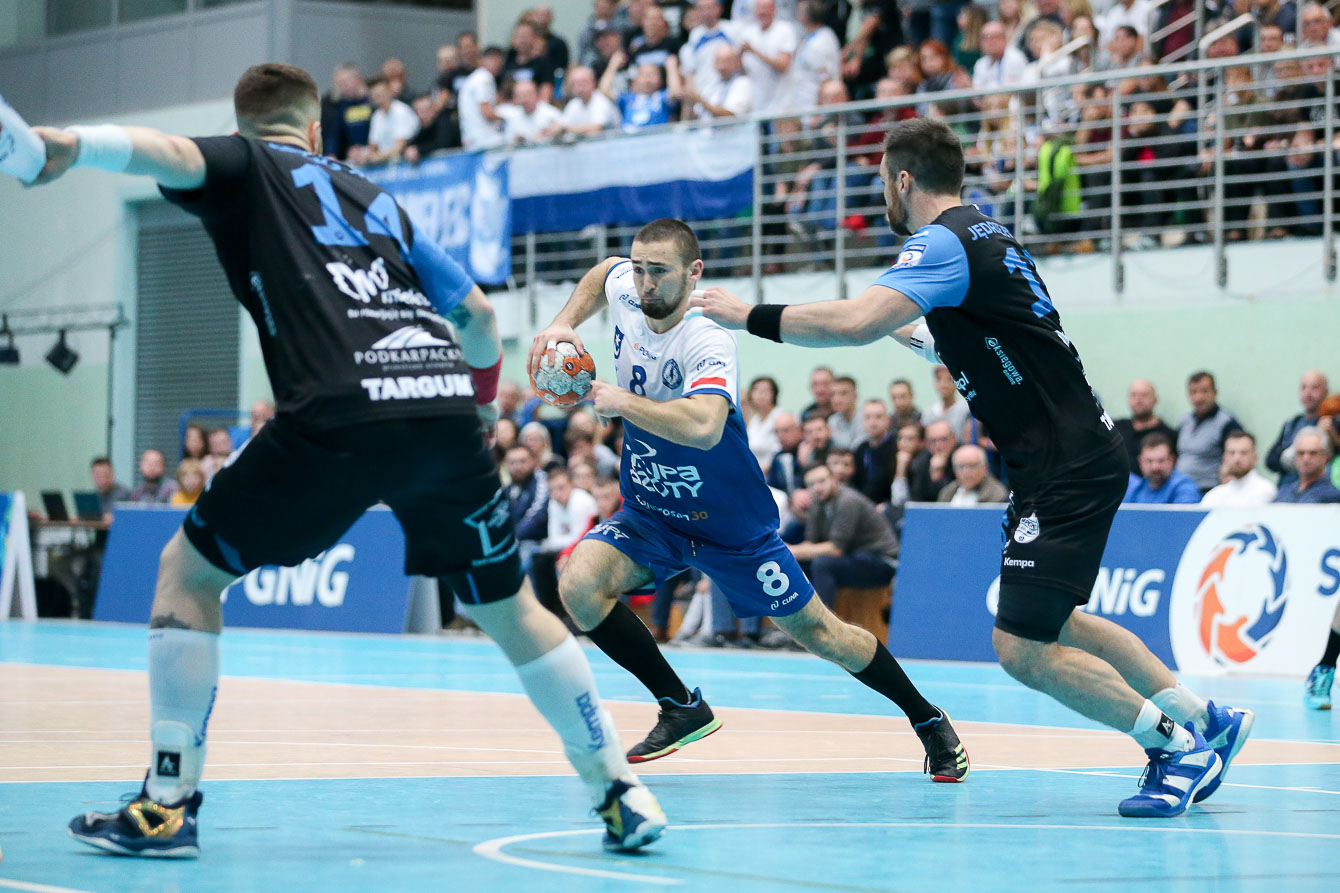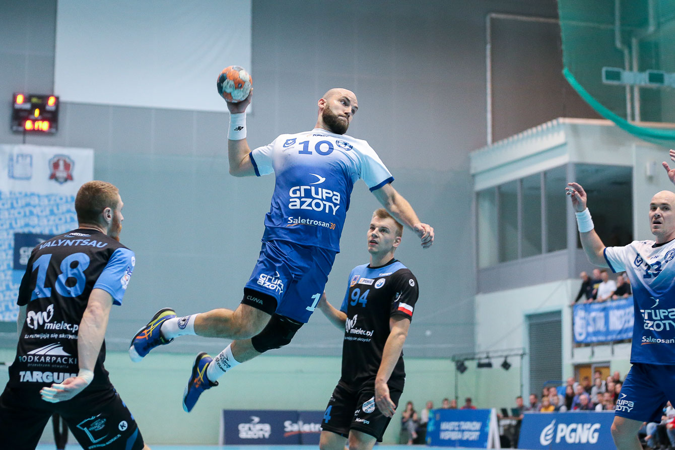 z pokonaniem bramkarza Grupy Azoty. Po akcji Alberta Sanka i Kamila Pedryca gospodarze prowadzili 14-11. Mielczanie zanotowali jednak serię trzech bramek z rzędu, doprowadzając do remisu. To był już ostatni zryw, na jaki stać było zawodników Dawida Nilssona. Po chwili tarnowianie z powrotem wyszli na trzybramkowe prowadzenie. To za sprawą skuteczności Pedryca i waleczności Rennosuke Tokudy. Japończyk wyłuskał piłkę przeciwnikowi i oddał ją do Kacpra Lazarowicza, który wykończył całą akcję. W 44. minucie Jakub Kowalik pokonał bramkarza Stali, a beniaminek Superligi pierwszy raz podczas sobotniego spotkania, zwiększył dystans pomiędzy drużynami do czterech trafień. Ostatni kwadrans stał pod znakiem rozluźnienia szyków defensywnych obu zespołów. Akcja ofensywne był szybciej rozgrywane i kończyły się skutecznymi próbami. Grupa Azoty potrafiła wykorzystać grę w liczebnej przewadze, ta sztuka nie udała się z kolei drużynie podkarpackiej, kiedy sędzia wykluczył Łukasza Nowaka na cztery minuty przed zakończeniem zawodów. Trzecią i jak do tej pory najbardziej okazałą wygraną tarnowian w trwających rozgrywkach przypieczętował celnym rzutem Jakub Kowalik.