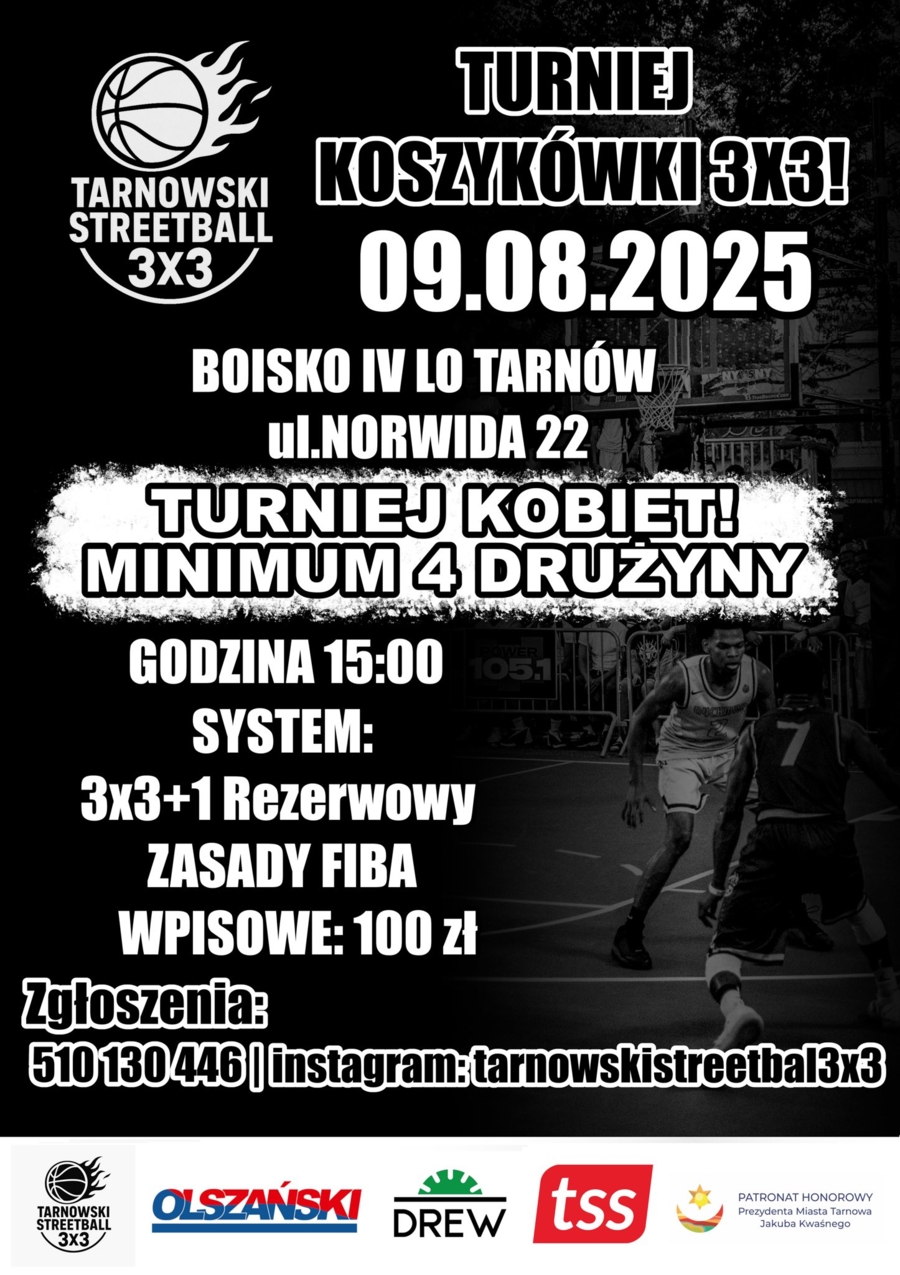 Zapraszamy  w sobotę, 9 sierpnia o godzinie 15.00 na turniej koszykówki 3×3. Rozegrany on zostanie na boisku IV Liceum Ogólnokształcącego przy ul. Norwida 22 w Tarnowie. To nie tylko turniej – to start czegoś nowego. Będzie kosz, muzyka, nagrody i atmosfera, którą sam pomożesz stworzyć. Jeśli kochasz rywalizację, zapach rozgrzanej gumy i basket, to lepiej nie mogłeś trafić – czytamy na facebooku Tarnowskiego Streetballu 3×3.