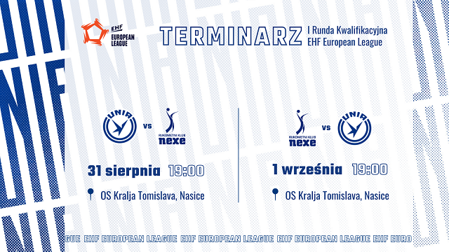Znamy oficjalne terminy spotkań Grupy Azoty Unii Tarnów w I Rundzie Kwalifikacyjnej EHF European League. Z powodu problemów z halą, decyzją obu klubów, tarnowska drużyna rozegra dwumecz z RK Nexe na terenie przeciwnika. Oba mecze rozegrane zostaną dzień po dniu na przełomie sierpnia i września.