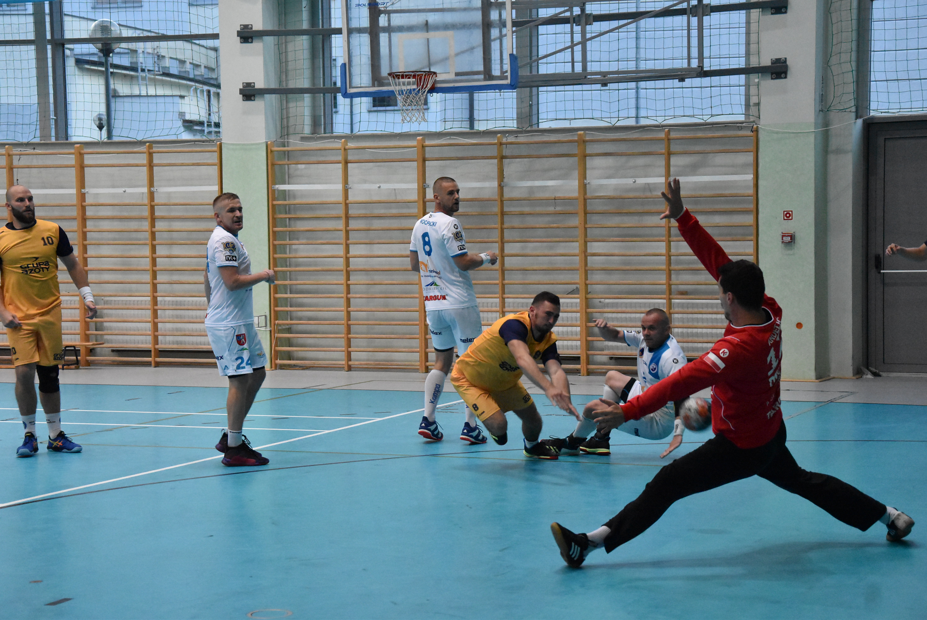 Przy stanie 9-8 dla gospodarzy, reprezentanci Stali Mielec zwiększyli tempo gry i trzy razy z rzędu pokonali tarnowskiego golkipera. Serię przeciwników przerwał Misiewicz, trafiając z trudnej pozycji. Gdy Łukasz Kużdeba skutecznie zakończył szybki atak, rezultat meczu znowu wrócił do stanu równowagi. Ostatecznie pierwszą połowę mielczanie wygrali minimalnie 14-13, ale warto wspomnieć jeszcze o pięknej akcji podopiecznych Marcina Markuszewskiego. Łukasz Nowak „wystawił” piłkę Damianowi Misiewiczowi, a ten z powietrza umieścił ją między słupkami.