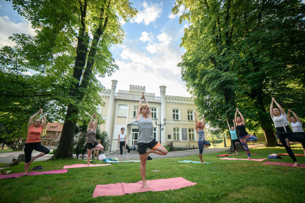 Wakacyjna joga na trawie obok BWA / 2021 Park Strzelecki sensorycznie – dbajmy o zmysły!