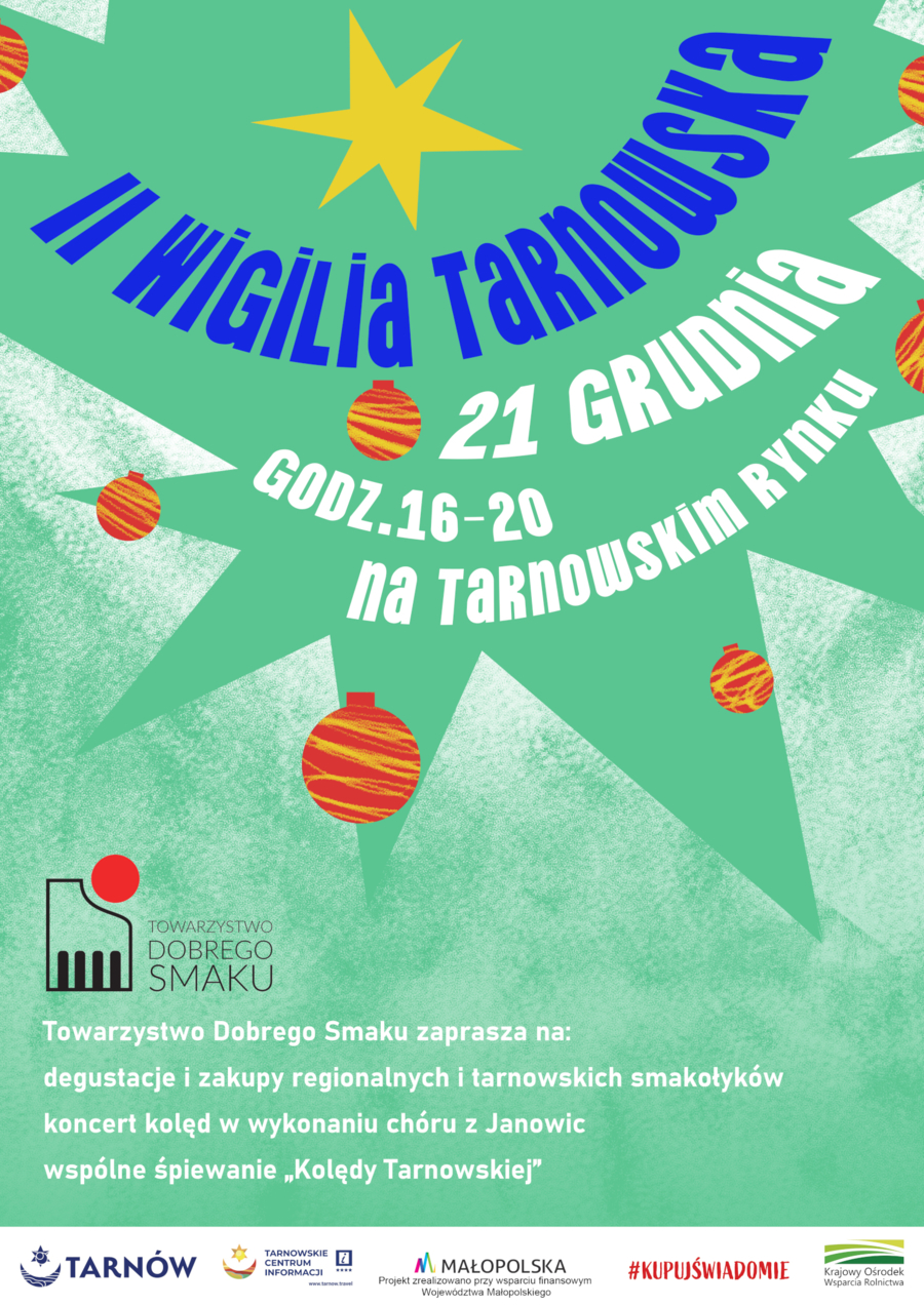 Tarnowianie będą mogli bezpłatnie posmakować lokalnych smakołyków, kupić produkty na wigilijny i świąteczny stół, wspólnie pokolędować. – Skomponowaliśmy poczęstunek opierając się na naszych lokalnych produktach. Po pierwsze dlatego, że są niepowtarzalnie smaczne, zrobione z szacunkiem i poszanowaniem tradycji. Po drugie, chcemy pokazywać kulinarne bogactwo Tarnowa i regionu – mówi Paweł Piszczek.