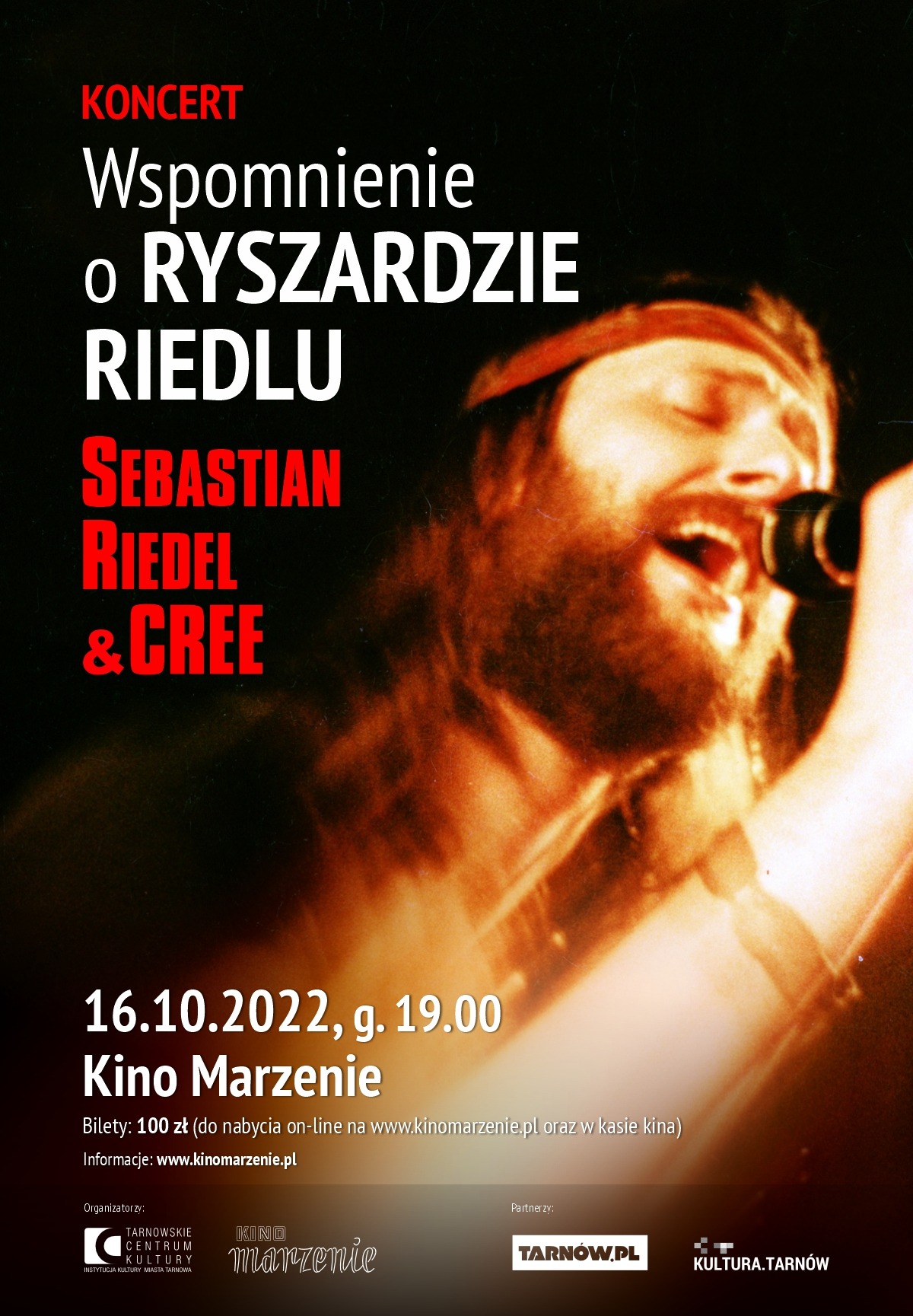 W Tarnowie usłyszymy nieśmiertelne klasyki Dżemu z lat, kiedy przed mikrofonem stał Ryszard Riedel, a także autorskie kompozycje Sebastiana. “Czerwony jak cegła”, “Wehikuł czasu”, “Sen o Victorii” i inne hity wykonane na żywo przez Sebastiana Riedla i zespół Cree pozwolą odbyć sentymentalną podróż do pierwszych lat działalności grupy Dżem.