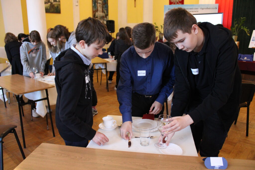 Uczestnicy musieli uporać się z nakryciem stołu (technik hotelarz), wykonaniem ozdoby wypieku cukierniczego (technik technologii żywności), zrobieniem kompozycji dekoracyjnej (technik architektury krajobrazu), rozpoznaniem popularnych zabytków (technik obsługi turystyki), dokonaniem kalkulacji matematycznej (technik rachunkowości) oraz stworzeniem krótkiego opisu reklamowego (technik handlowiec). Każda runda oceniania była przez nauczycieli specjalistów, którzy na co dzień prowadzą zajęcia w ZSEO. Byli to: przewodnicząca komisji pani dyrektor Jolanta Chmura, pani Katarzyna Bogusz, pani Elżbieta Radwańska, pani Maria Jałowiec i pani Paulina Wilk.